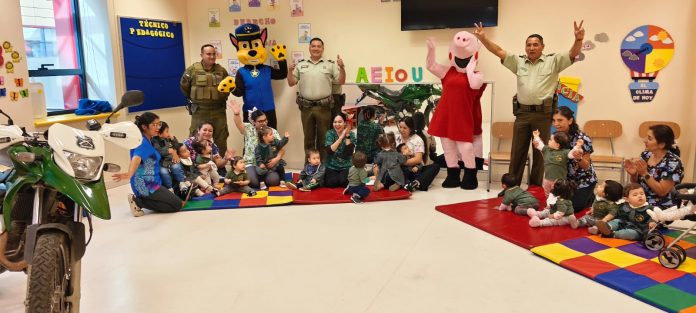 Durante la jornada de hoy, los funcionarios visitaron el jardín infantil del Hospital de Angol, instancia en la que niños y niñas pudieron disfrutar de la presencia de personajes institucionales, compartir con los carabineros y conocer, de manera didáctica, el importante rol que cumplen en la sociedad.